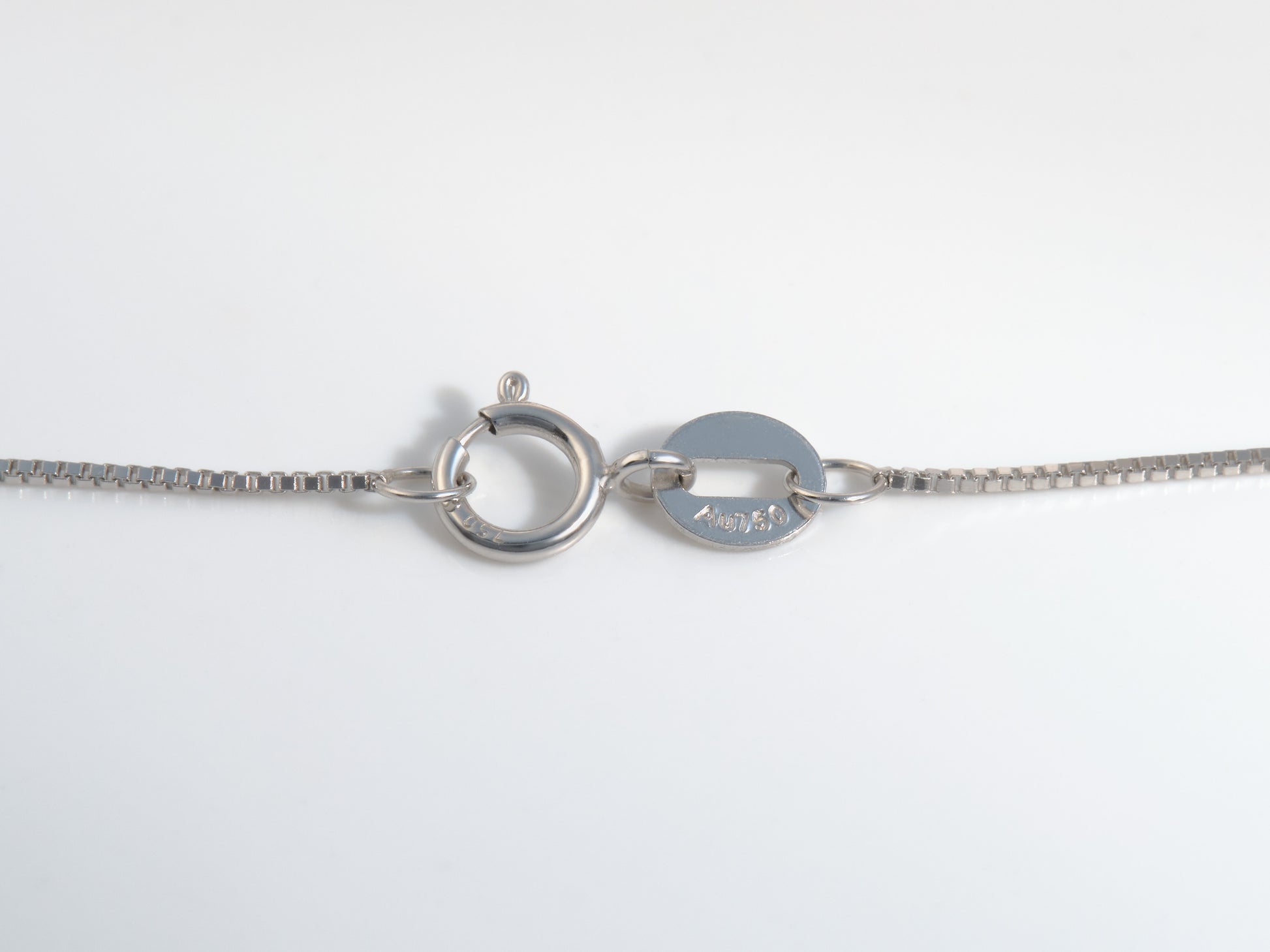 ⮞ אפשרויות התליון והשרשרת עשויות מזהב לבן 18 קראט מלא; הזהב מסומן ב-AU750